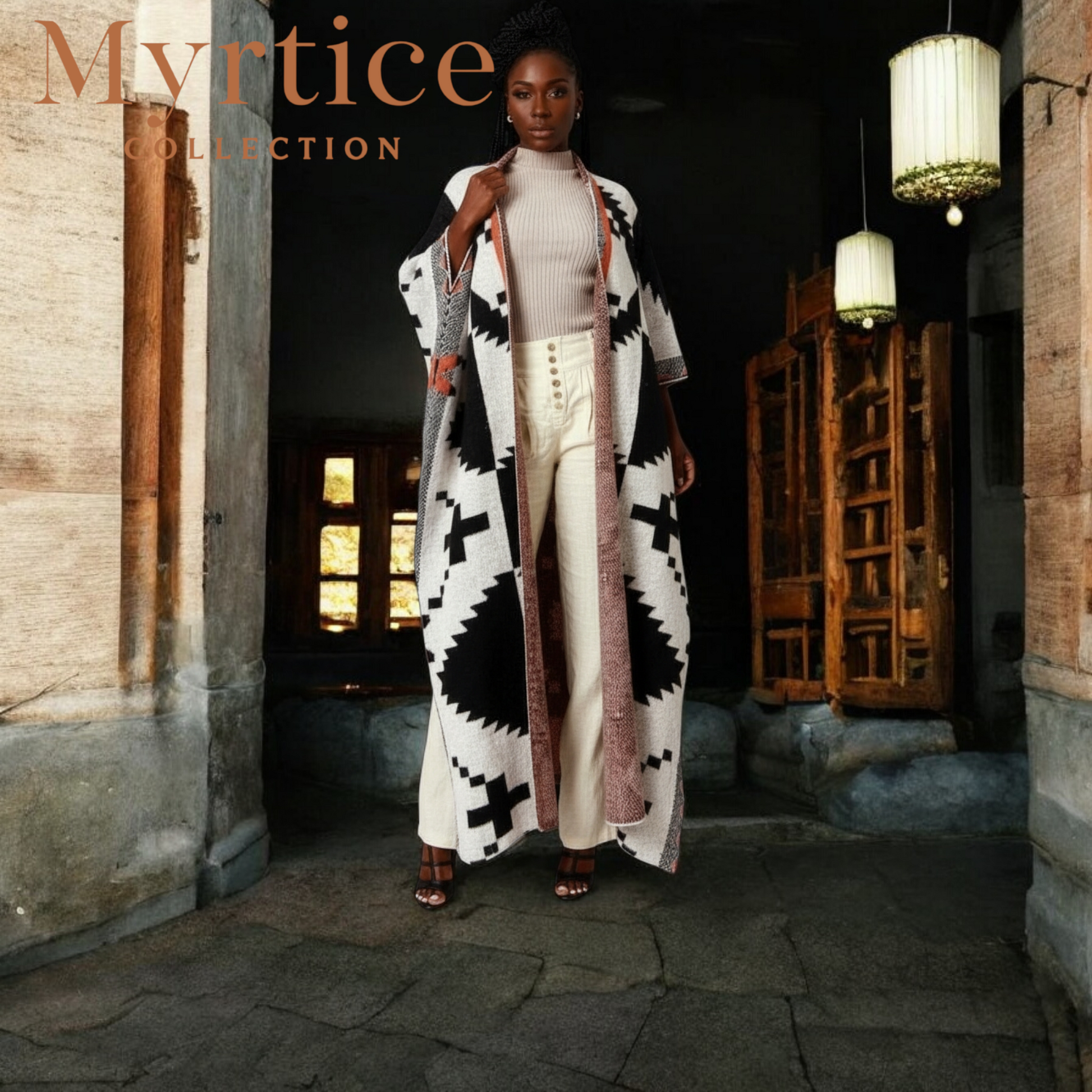 Experience the perfect combination of fashion and functionality with our Aztec Duster. This statement piece not only offers warmth, but also adds an edgy flair to your outfit. Made with a bold Aztec print, it's a must-have for any fashion-forward individual.